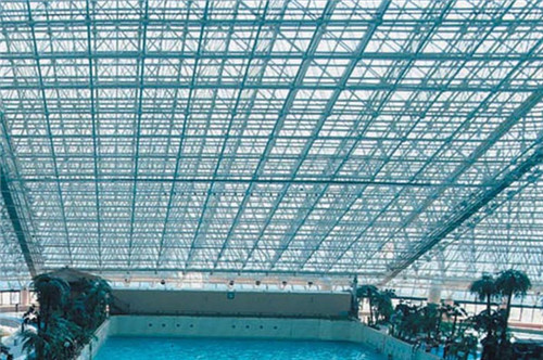 由多根桿件按照一定的網(wǎng)格形式通過節(jié)點連結(jié)而成的空間結(jié)構(gòu)。具有空間受力、重量輕、剛度大、抗震性能好等優(yōu)點;可用作體育館、 影劇院、展覽廳、候車廳、體育場看臺雨篷、飛機庫、雙向大柱 網(wǎng)架結(jié)構(gòu)距車間等建筑的屋蓋。缺點是匯交于節(jié)點上的桿件數(shù)量較多,制作安裝較平面結(jié)構(gòu)復(fù)雜。